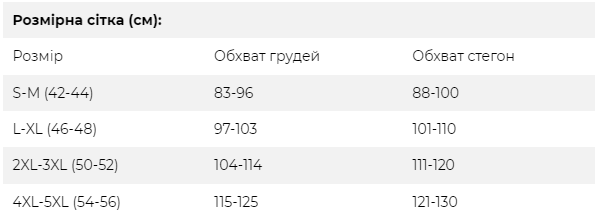 🔥4XL-5XL (54-56): обхват грудей – 115-125 см, обхват стегон – 121-130 см.